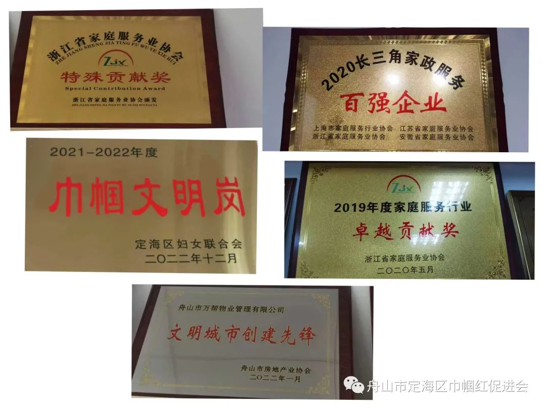 在作為城市管理延伸部分的物業(yè)服務(wù)領(lǐng)域,她始終堅(jiān)持以黨建引領(lǐng),立足于包括小區(qū)兼合式黨支部、業(yè)主委員會(huì)、物業(yè)公司三位一體的紅色物業(yè)聯(lián)盟,助力提高服務(wù)品質(zhì),服務(wù)于千家萬戶,成功創(chuàng)建了浙江省首批紅色物業(yè)小區(qū)項(xiàng)目,在管項(xiàng)目中,有兩個(gè)項(xiàng)目已獲批紅色物業(yè)項(xiàng)目。目前,由其創(chuàng)建的舟山市萬幫物業(yè)公司已榮獲浙江省 AAA級(jí)信用等極企業(yè)(注“AAA級(jí)系最高級(jí))、舟山市大學(xué)生就業(yè)見習(xí)基地、定海區(qū)巾幗示范基地、守合同、重信用單位、誠信企業(yè)等榮譽(yù)稱號(hào)。