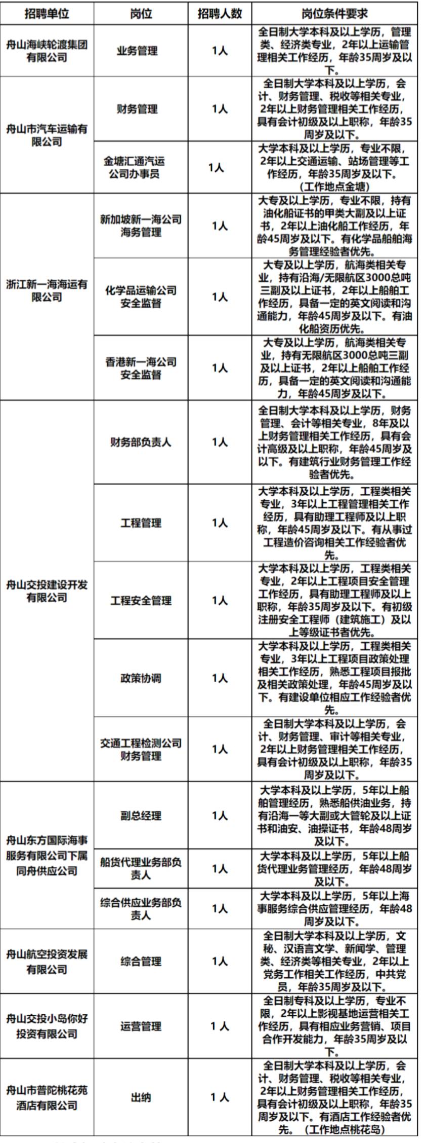 聯(lián)系人:舟山交通投資集團有限公司人力資源部李女士。