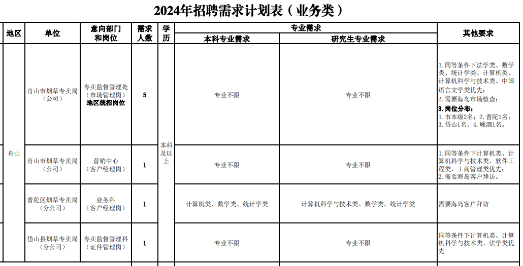 本次共計(jì)招聘196人,其中舟山招聘10人。