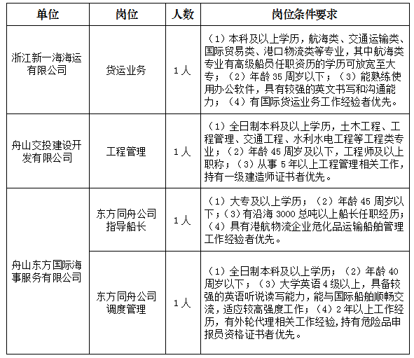 聯(lián)系人:舟山交通投資集團有限公司人力資源部張女士。