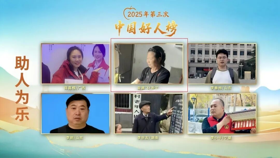 昨天,中央文明辦發(fā)布2025年第3次“中國(guó)好人榜”,我市金賽飛獲評(píng)助人為樂“中國(guó)好人”。記者從市文明辦了解到,截至目前,我市共有中國(guó)好人25例、浙江好人193例。